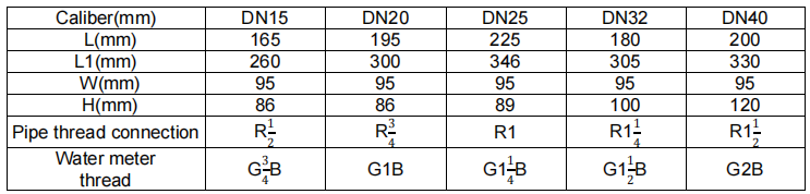 Installation positions of all parts of the flow meter should avoid being approached by sun light, flooding, freezing, chemicals and electromagnetic pollutions, and should facilitates dismounting and metering.Installation of ultrasonic water meter Caliber(mm)